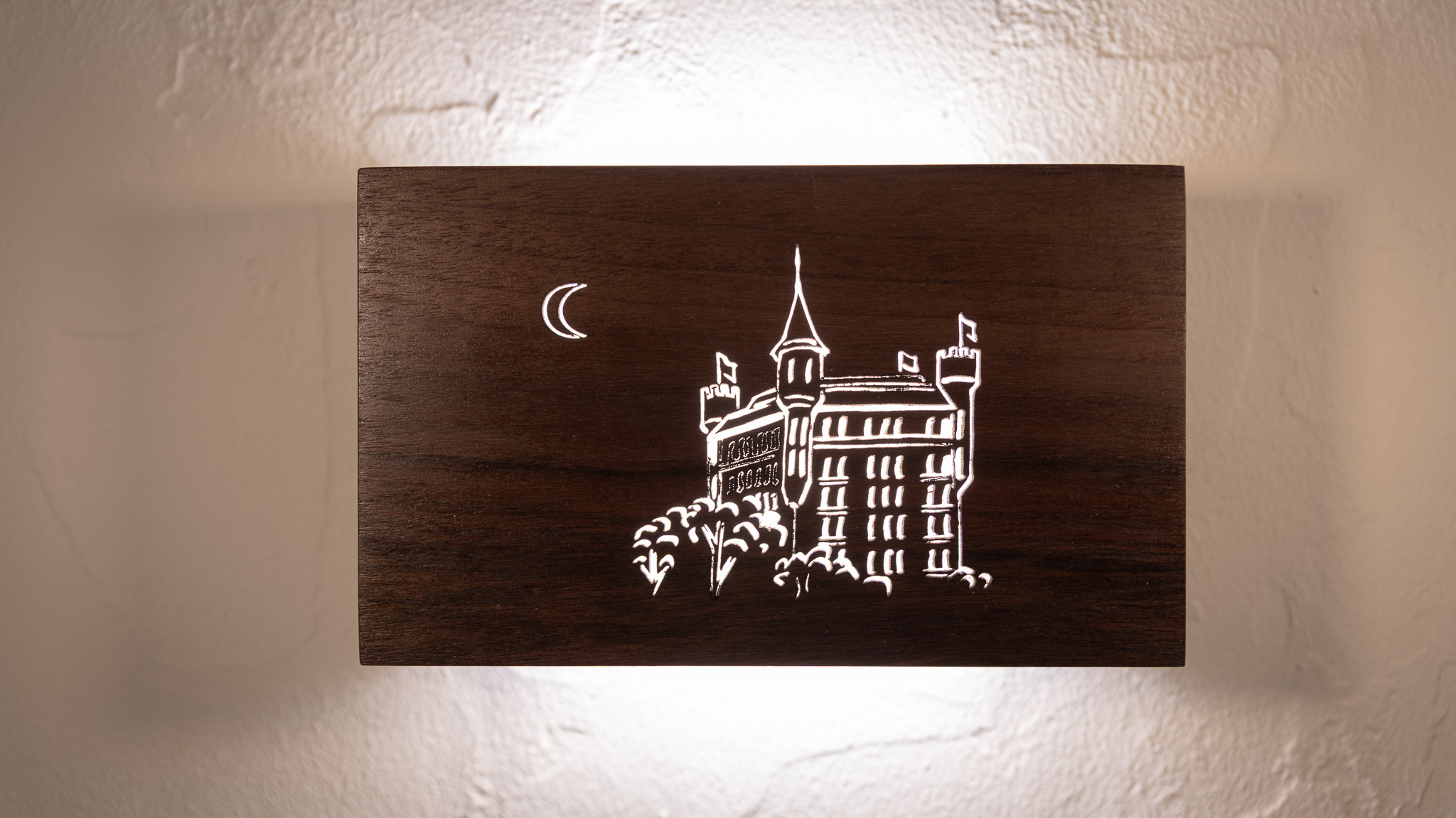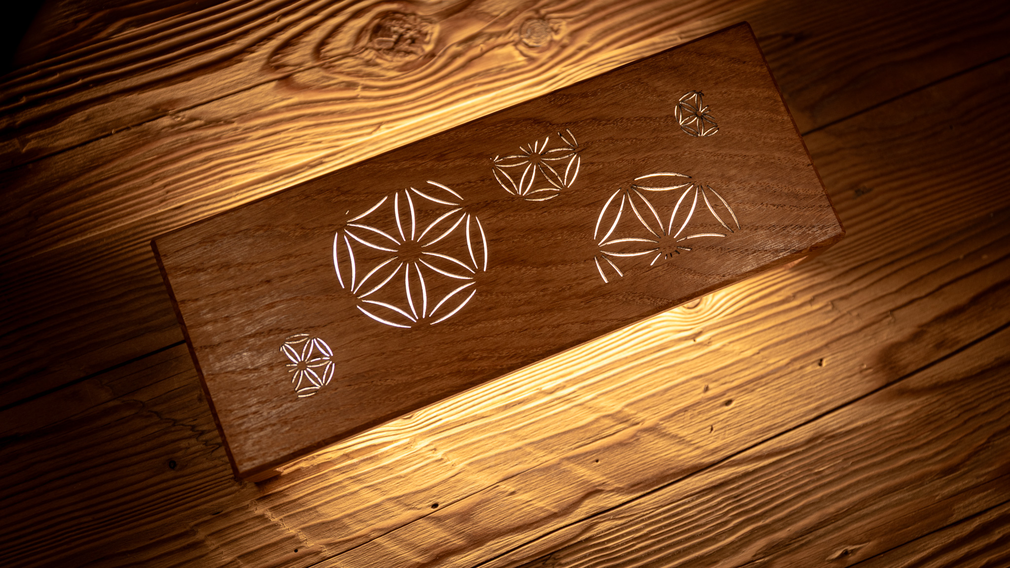Die Gravur der Holzabdeckung, eines der Highlights unseres Produktes, kann individuell angepasst werden; wie auch die Art des Holzes.
